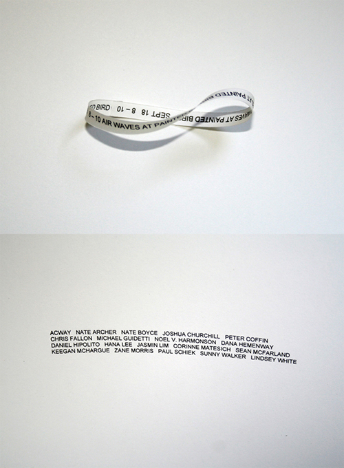 Artists: Nate Boyce / Joshua Churchill / Chris Fitzpatrick / Colter Jacobsen / Jennifer Locke/ Sean McFarland / Keegan McHargue / Emily Prince / Paul Schiek / Leslie Shows/ Margaret Tedesco / Paul Wackers / Lindsey White / David Wilson